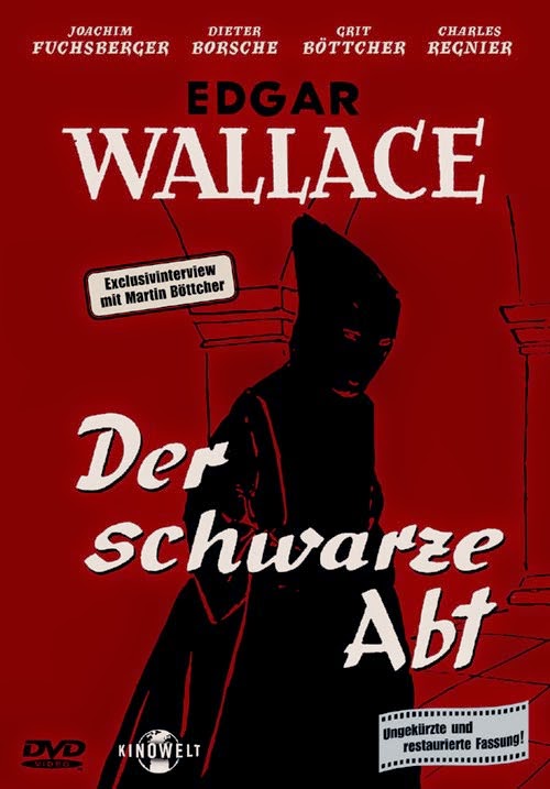 To loosely translate the German text at New Video: "The ghostly old ruins of Fossaway Abbey loom in the dark of the night. A sinister figure in a black robe, the hood pulled low over his head, disappears silently into the archway of the building. Silently the masked shadow follows a man — and the next day the dead body of hunting manager (Kurd Pieritz) is found in the old abbey. Detective Puddler (Charles Régnier) and his assistant Horatio W. Smith (Eddi Arent) take up lodgings in the nearby castle of the intransparent Lord Harry Chelford (Dieter Borsche of The Brain [1962 / trailer]), whose claims that the killer is an old ghost, the so-called 'Black Abbot', falls upon deaf ears. Detective Puddler believes that the fabled treasure of the Abbey is the true reason behind the murder..."