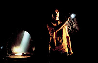 His first film, Clownhouse (1988 / trailer), has a few kids alone in a house fighting off crazed clowns; The Nature of the Beast (1995 / trailer) is an enjoyable version of Joe Schmoe with a secret confronted with a psycho hitchhiker; Powder (1995) tells a pretentious tale of the discovery of a strange country boy with supernatural powers who grew up locked in his Dad's basement; and Rites of Passage (1999 / trailer) is a father-sons melodrama cum thriller with a few killers thrown in for good measure. For Jeepers Creepers, Salva decided to tackle the genre of teen horror and came up with an odd, supernatural genre-crossing mixture of Duel (1971 / trailer) and The Hitcher (1986), peppered with a small homage to the police station scene in The Terminator (1984 / trailer).