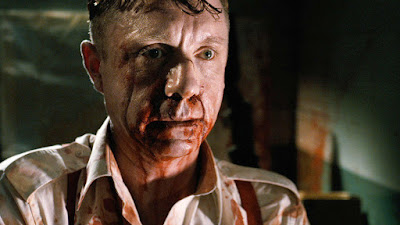 This Kiwi flick — Is Kiwi a pejorative? Is it the N-word from Down Under? Is it even possible to have an N-word for white folks? — is a low budget WWII horror Kammerspiel(chamber play) with a core cast of three. Everyone else flits in only long enough to die: less time on set, less money spent. And the money saved seems to have been poured into the gore. (Good move!)