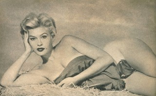 The pretentious beatniks and culture vultures, in turn, are one and all a fun persiflage of types still recognizable today, pompous in their self importance, illogical and insincere in their appreciation. Perhaps the most honest person among them all is the money-hungry blonde model Alice (Judy Bamber, seen below as cheesecake), whose combined greed and honesty and lack of respect lead to her eventual sculptural immortalization. She, like the cat and an overzealous undercover cop (Bert Convy, of [23 July 1933 – 15 July 1991] of Jennifer (1978 / trailer], Hanging by a Thread (1979 / trailer], and Ebony, Ivory and Jade (1979 / intro]), ends up as art, covered in plaster. (In theory, they are covered with clay, but not only is the material obviously plaster, but Walter's pile of clay neither diminishes not gets replenished at any point in the movie.)