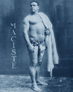 In the USA, Zorro flew from the title and the unfamiliar Maciste became the legendary Samson. Indeed, seldom did any Italian Maciste film ever reach other lands with the hero keeping his name, for although the character of Maciste — created by Gabriele d'Annunzio (screenwriter) and Giovanni Pastrone (director) — is one of the oldest in cinema (he was first played by Bartolomeo Pagano [27 Sept 1878 – 24 June 1947], seen below, in the silent movie Cabiria [1914 / full movie]), he is generally unfamiliar outside the land of Lo Stivale.
