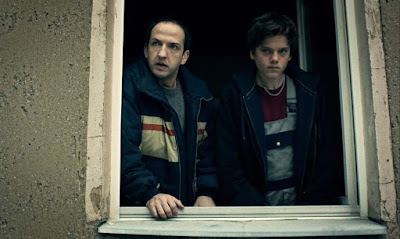 Like Night of the Living Dead, Rammbock starts in a still-sane world before, with no warning, the shit hits the fan. True, there are a scream or two in the distance, but that isn't really all that strange for either the big hipster party place Berlin has become or the rundown, heavy-drinking, working class city it used to be. Michael isn't even from Berlin, but has traveled up from Austria to visit Gabi (Anka Graczyk), his ex-girlfriend, on the excuse of returning her keys but actually in the hope of talking her out of leaving him. But she isn't there; instead, there is a plumber (Arno Kölker) and his young apprentice Harper — and then the plumber flips out and attacks. More by luck than anything else, Harper and Michael manage to lock the plumber out on the stairwell landing and themselves in Gabi's flat….