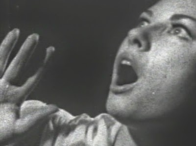 We stumbled upon this visually entertaining, almost innocent but nevertheless boob-opulent piece of cinematic cheesecake at one of our favorite sites for public domain films, the indispensibleInternet Archives, where it bears — bares ? — the title Nightmare at Elm Manor aka Flesh and Fantasy; we have since found it elsewhere as Nude in Dracula's Castle.